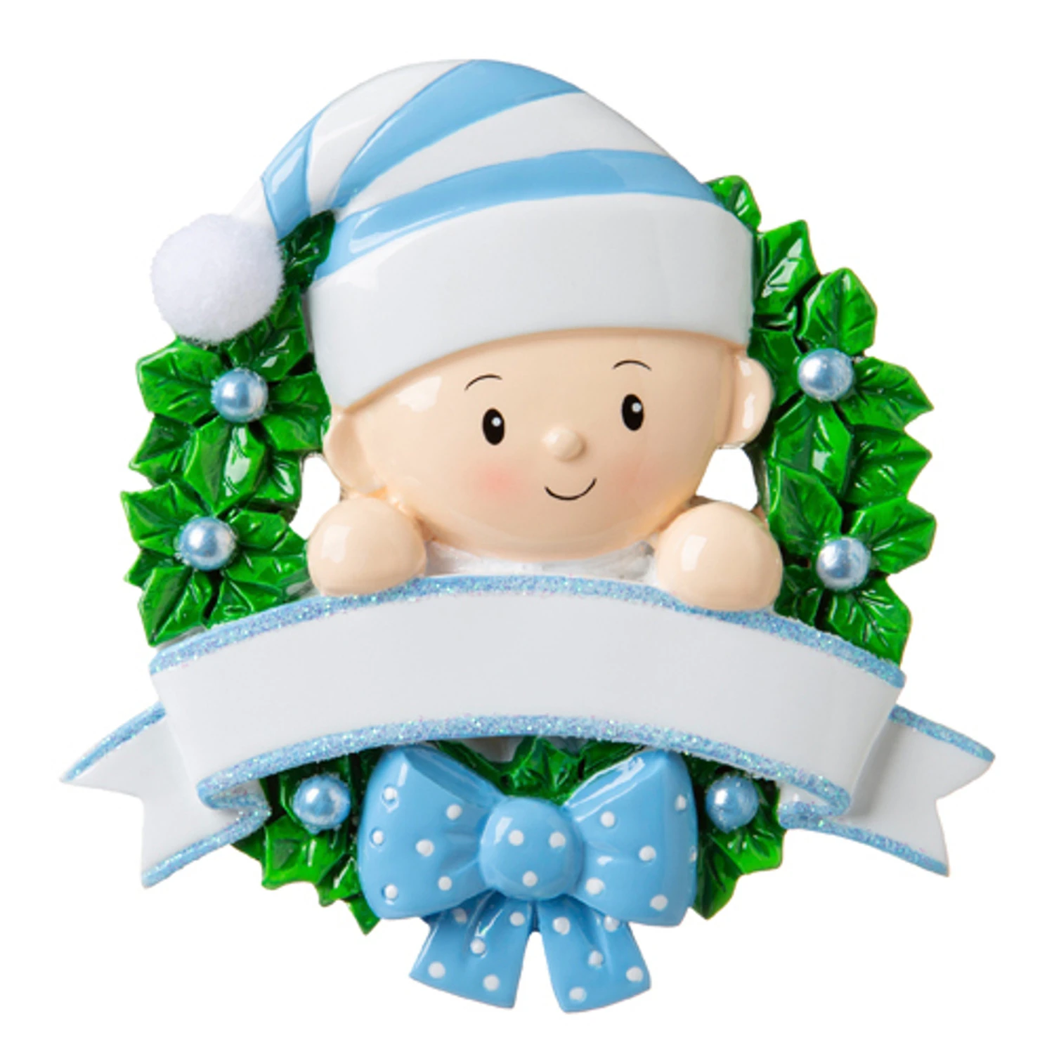 Celebrating a new bundle of joy? Know someone who is? What better gift than a Christmas ornament keepsake they can remember for years to come! This ornament features an adorable baby popping out of a shiny green glittered wreath! Made of resin. Dimensions: 3″ x 3.25″. Item #: OR1746-B