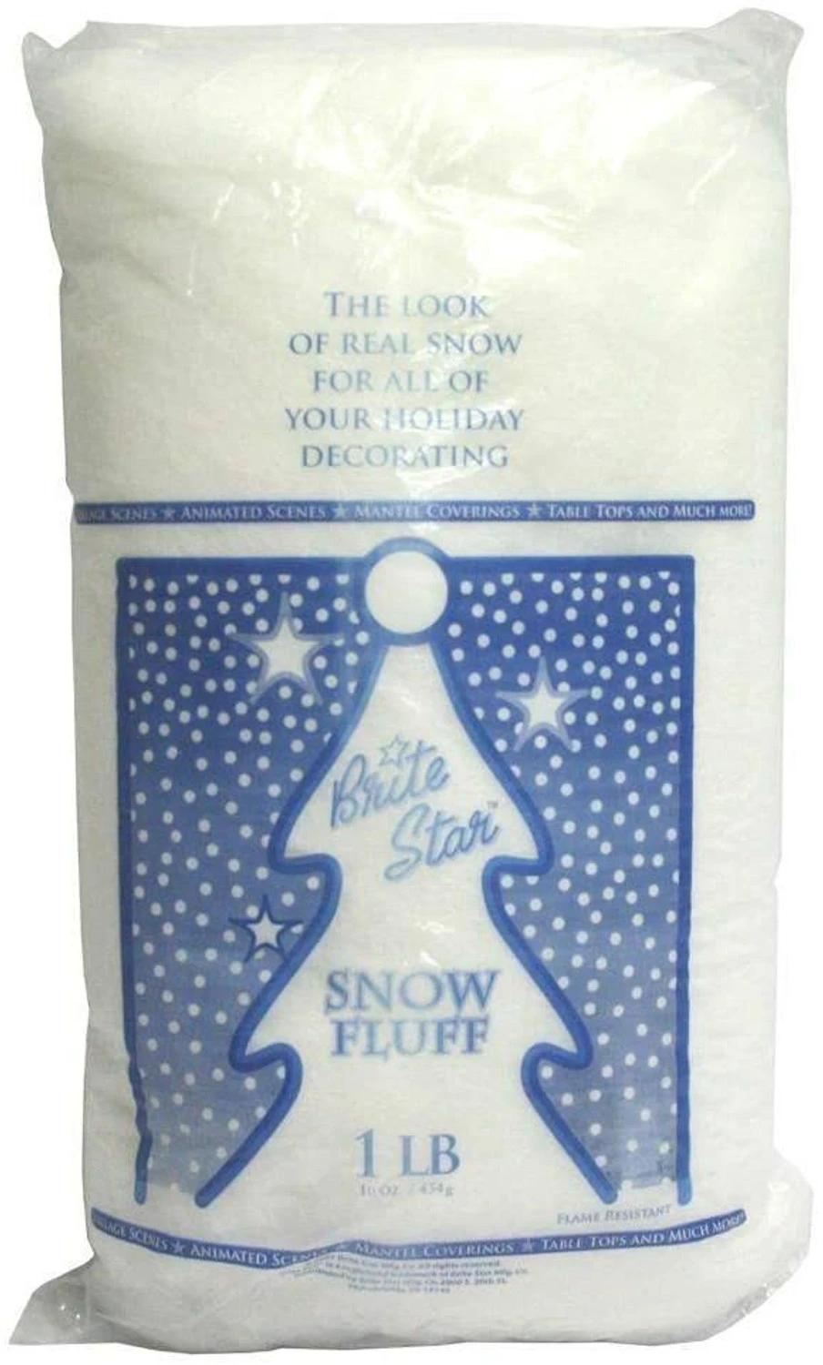 Give your mantle or table a snowy effect with this bag of snow fluff! You could even pull off little pieces and add them to your Christmas village! Dimensions: 12 oz bag of polyester snow. Item #: 30-577-00