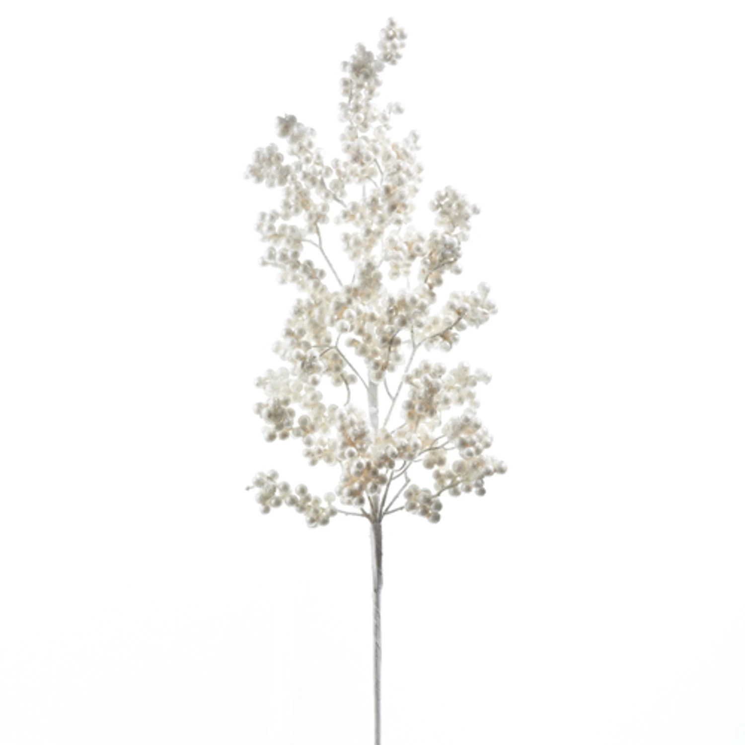This stunning spray features a white branch dotted with white berries and dusted in glitter! Made by Raz Imports. Made of foam and plastic. Dimensions: 32″. Item #: F4302392