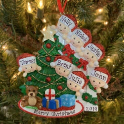 Family Of 7 Around The Christmas Tree Personalized Ornament OR1789-7