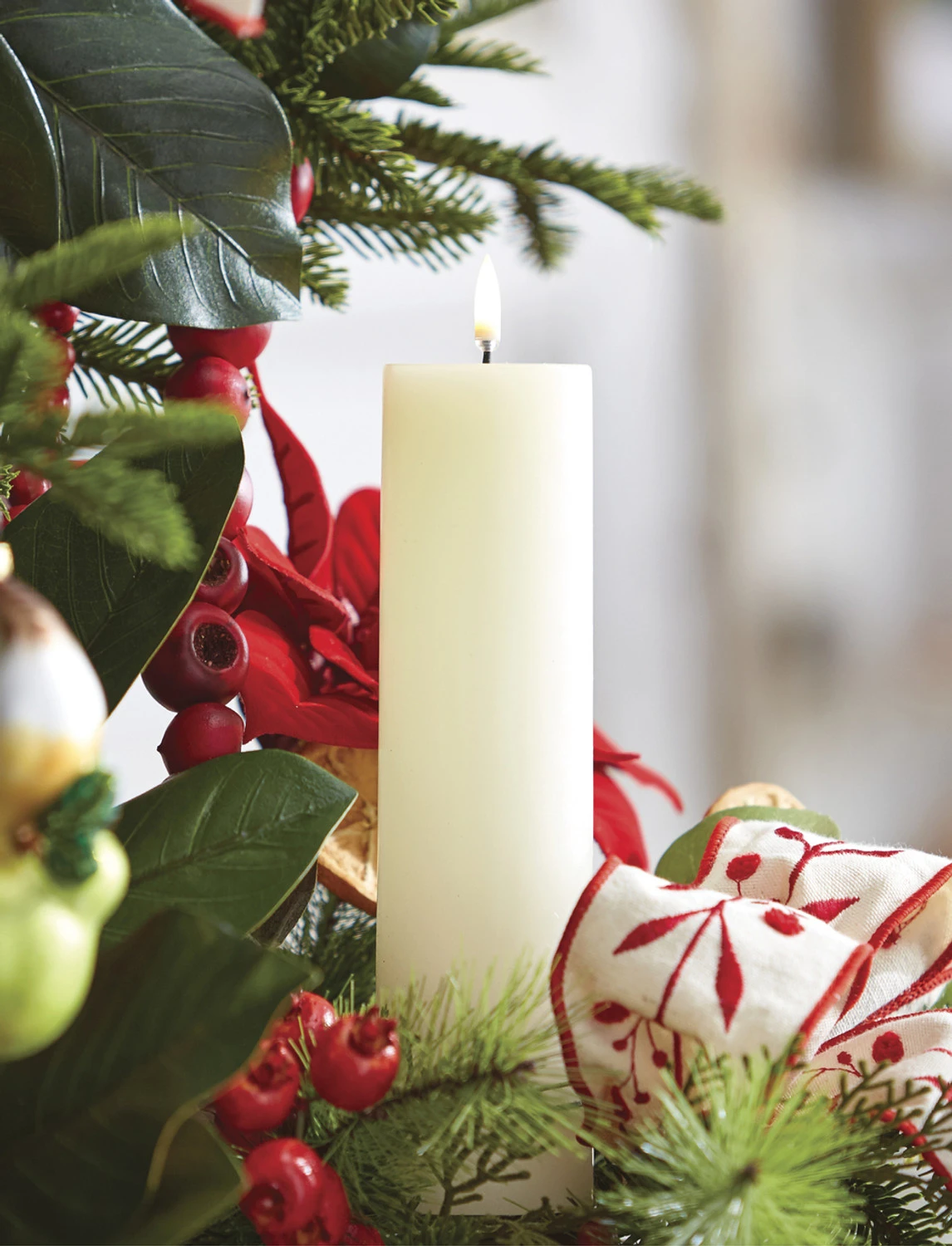 Spruce up your mantle with this stunning tall pillar candle! It features a new type of flame that has a light inside that flickers, different from the moving flame! Made by Raz Imports. Made of wax.. Requires 2 AA Batteries, not included. Remote Ready. 6 Hour Timer Repeats Every 18 Hours. Battery Life Approx 400 Hours. Can Be Used with Remote #4034520. Color: Ivory Dimensions: 2.25″ x 9.75″. Item #: 4034509